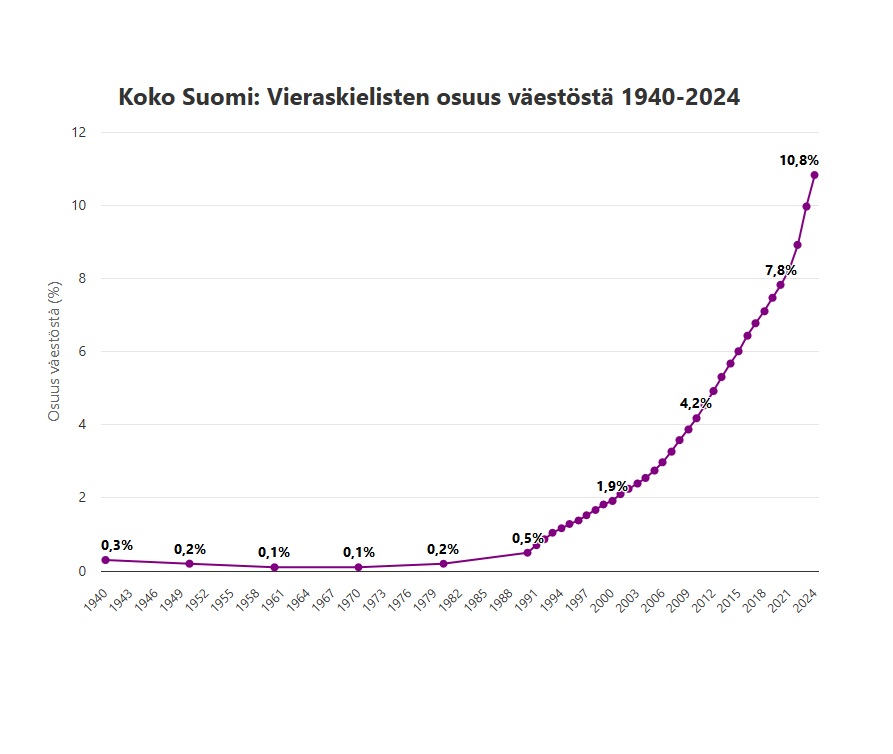 vieraskielisten kasvu